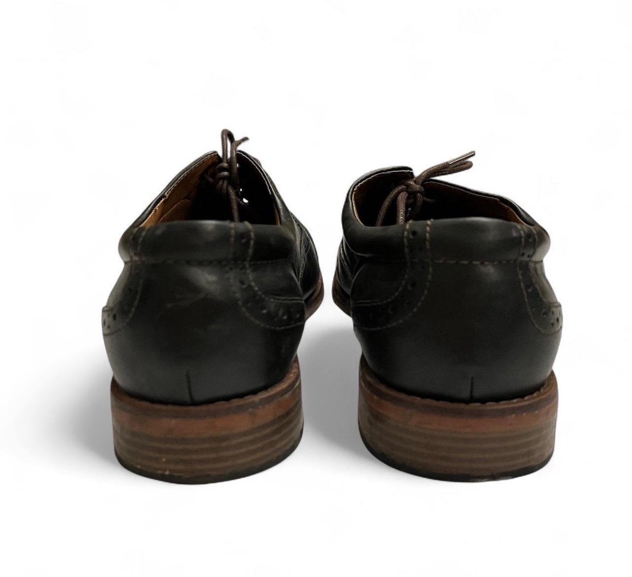 Classic and sophisticated, these G.H. Bass & Co. “Banks” oxford dress shoes are crafted from genuine leather with elegant brogue detailing and a stacked wooden heel. The cap toe design and sleek black finish make them a timeless choice for business, formal, or semi casual wear.