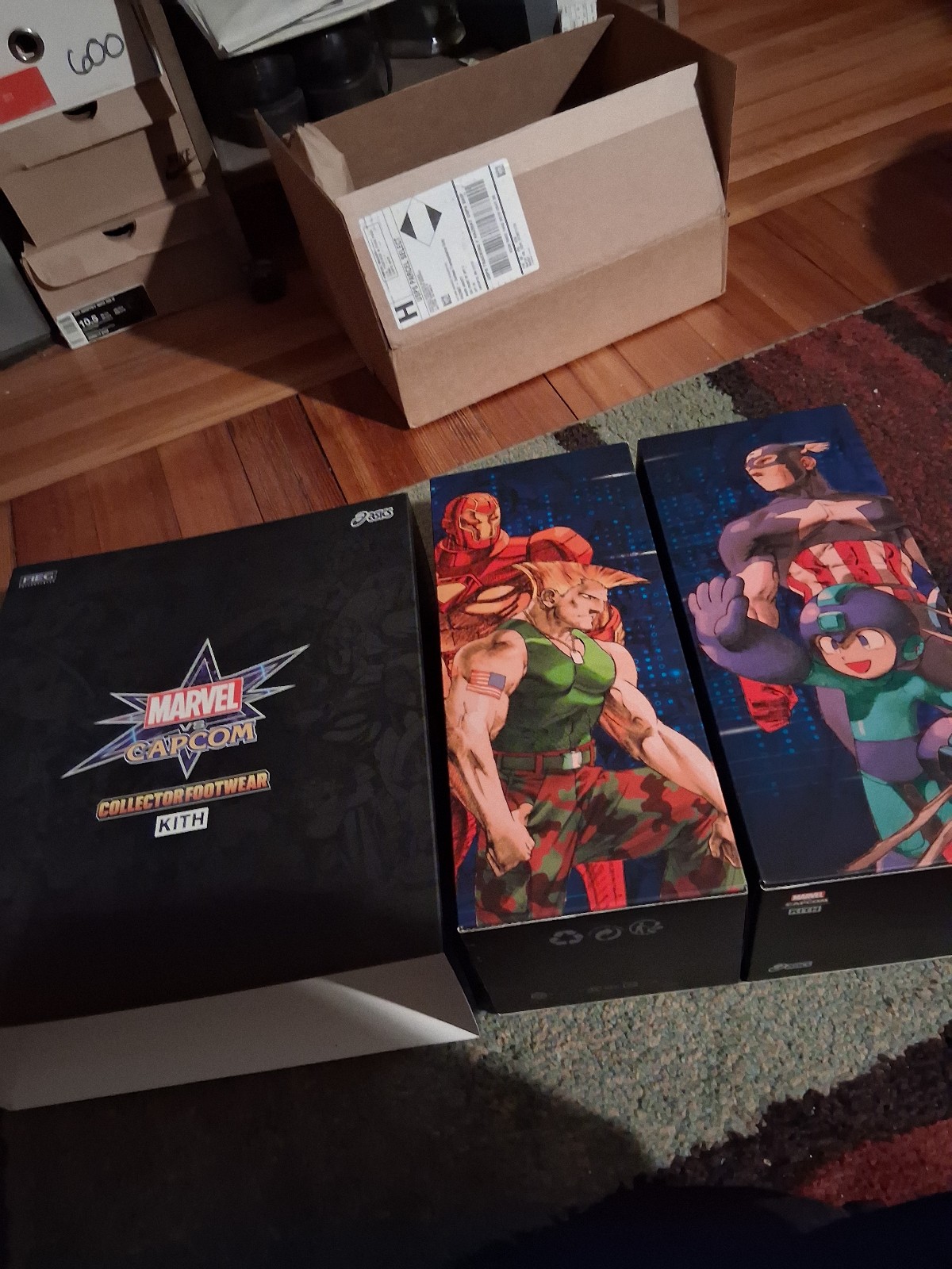 This is the collector's edition Marvel vs Capcom Ryu sneaker complete with comic wrapping paper and a collectors gaming box. Kith and Asics teamed up for a great collaboration across 4 brands. Asics, Kith, Marvel and Capcom are all represented in this collab. The white cloth represents Ryu's clothing in Street Fighter. The red and light blue give a nod to his 2 different headbands. The insoles have great artwork from the game. If you are a fan then you just know. These, like Ryu, are a winner
