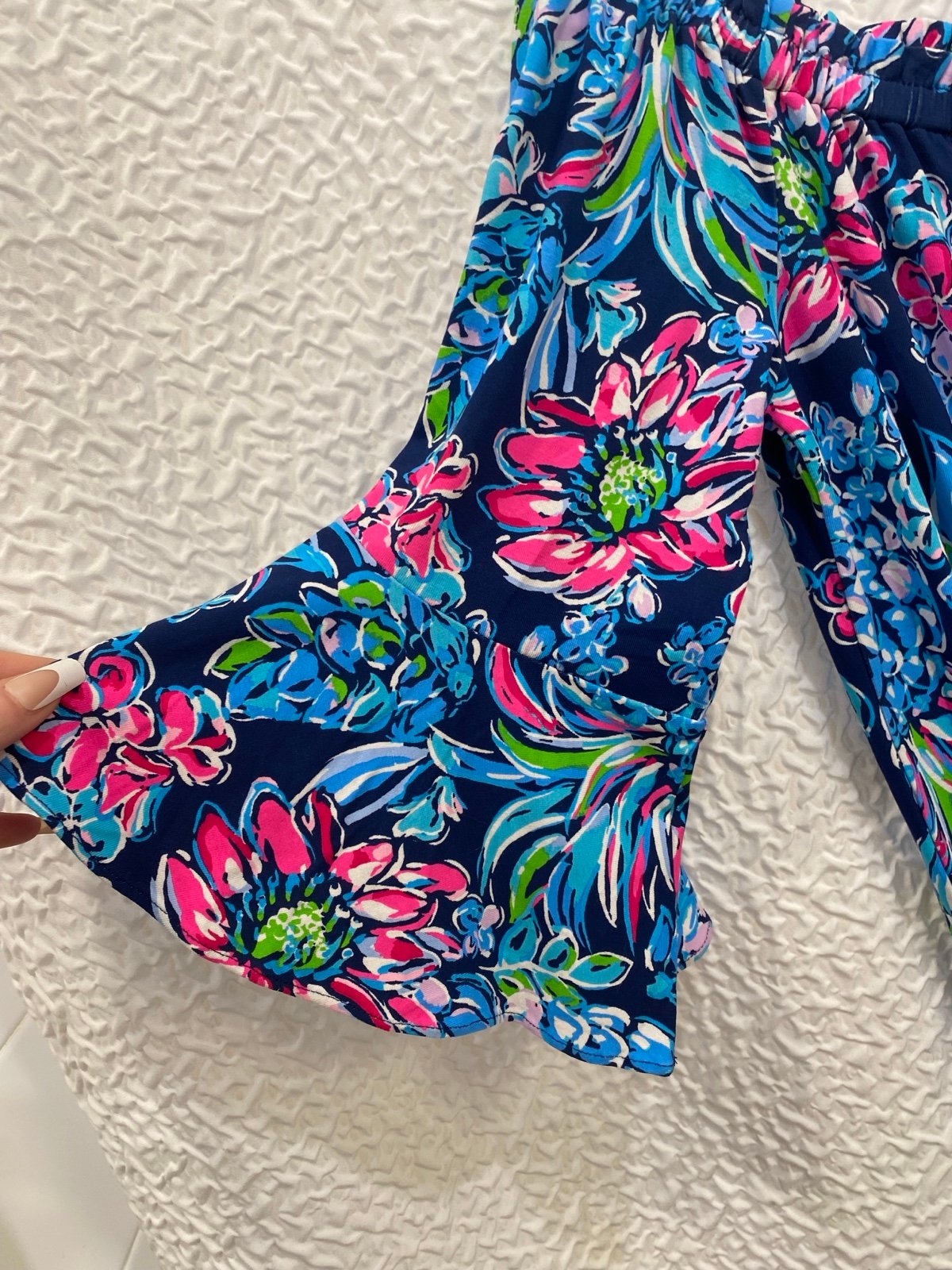 The Lilly Pulitzer Calla Jumpsuit in High Tide Navy with a Pineapple Paradise design is a stylish and versatile one-piece outfit perfect for summer and spring occasions.