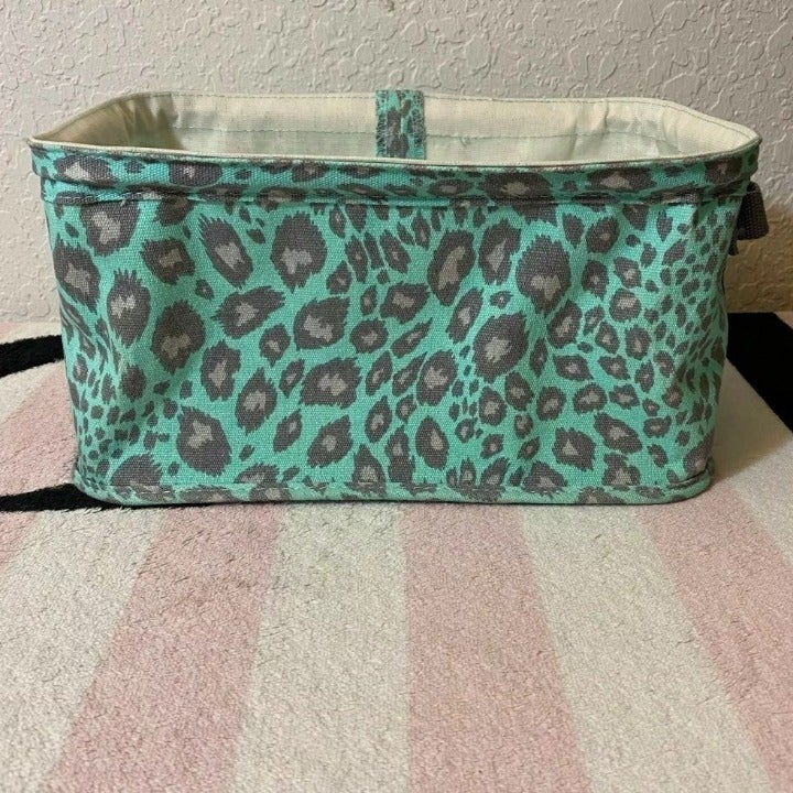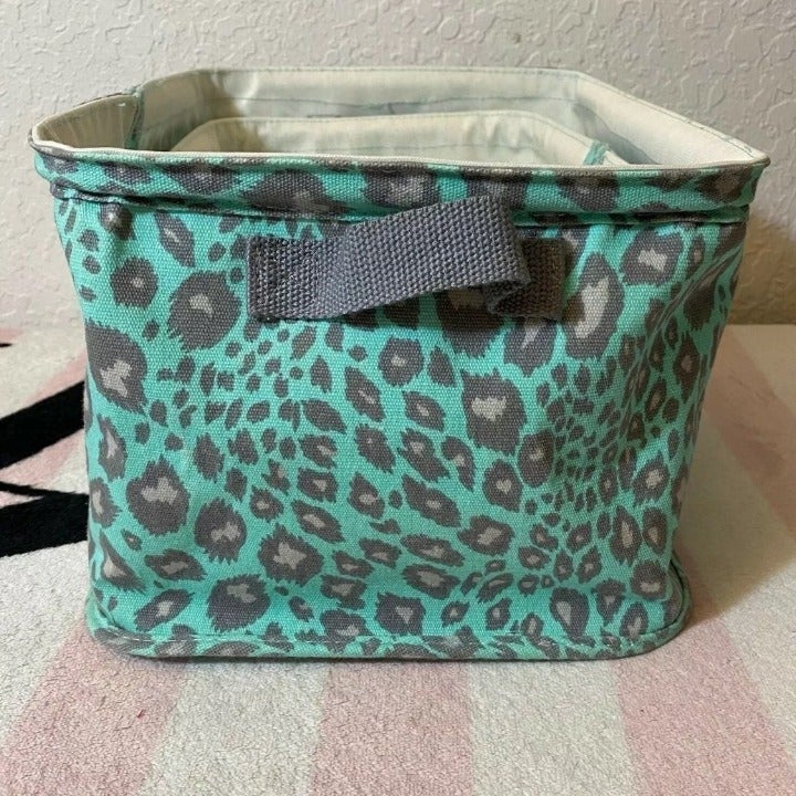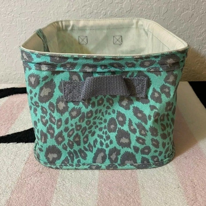 Victorias Secret Pink Mint Gray Leopard Print Collectible Display Bins - Set Of 2